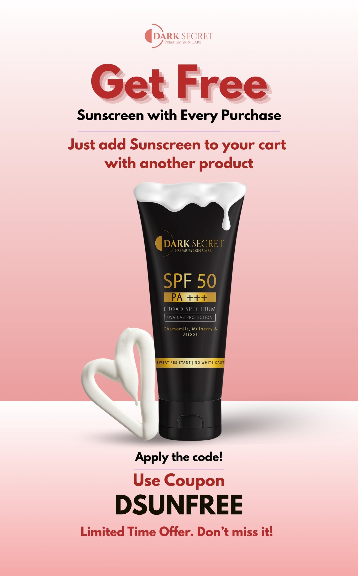 The Dark Secret SPF 50 sunscreen absorbs instantly without greasiness or white cast. It brightens skin tone and keeps it protected all day. Ingredients like chamomile and mulberry calm and rejuvenate.