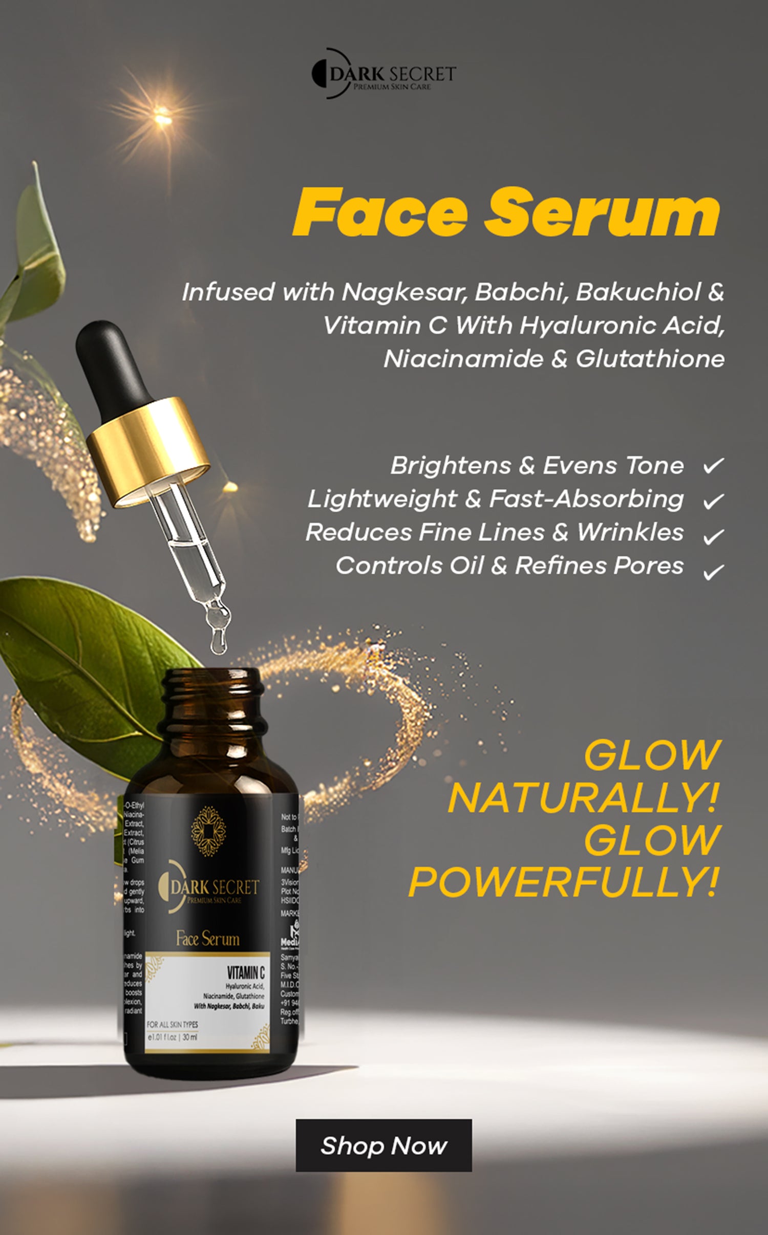 I recently started using the Dark Secret Face Serum and love how light yet hydrating it feels. My skin looks smoother and more radiant already. It absorbs fast, with no greasiness.