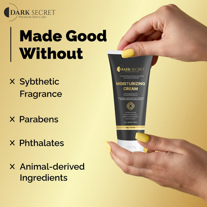 I have been using the Dark Secret Moisturizing Cream for the past two weeks, and I can really feel the difference in my skin. It keeps my face soft, hydrated, and non-greasy throughout the day. The texture is lightweight and absorbs quickly, which I love. The fragrance is also very pleasant and not overpowering. I would have given it 5 stars if the packaging was a little more premium, but overall, it’s a great product for daily use. Definitely worth trying!